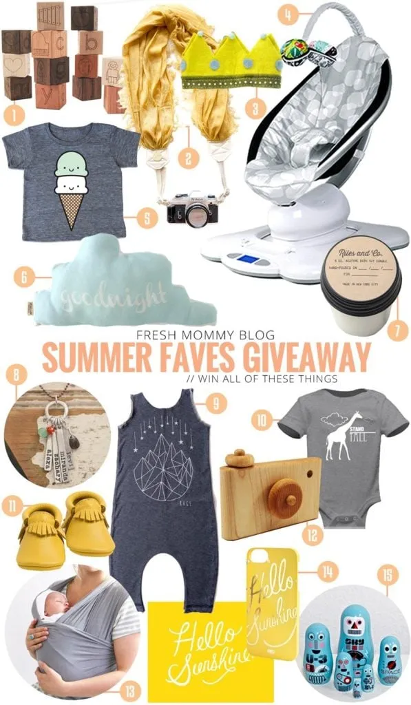 This image from a Fresh Mommy Blogger giveaway shows how multiple brands worked together to promote each other.