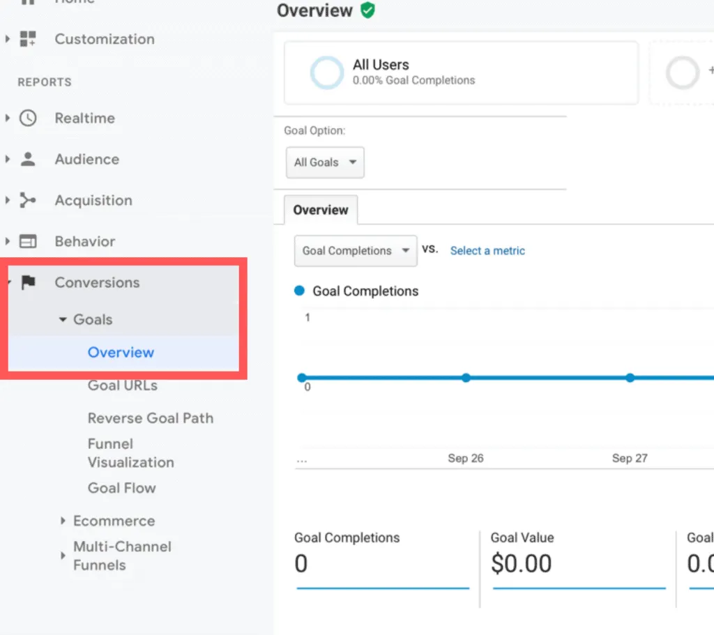 You can also use Google Analytics to identify conversions, when your visitors answer the call to action you present, like completing a form or buying a product. In Google Analytics, head to the “Conversions” menu, select “Goals” and then “Overview.”