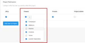 • Manage URL Parameters: Grant access to specific URL fields like: Campaigns, Mediums, Sources, Terms, Contents, Custom fields