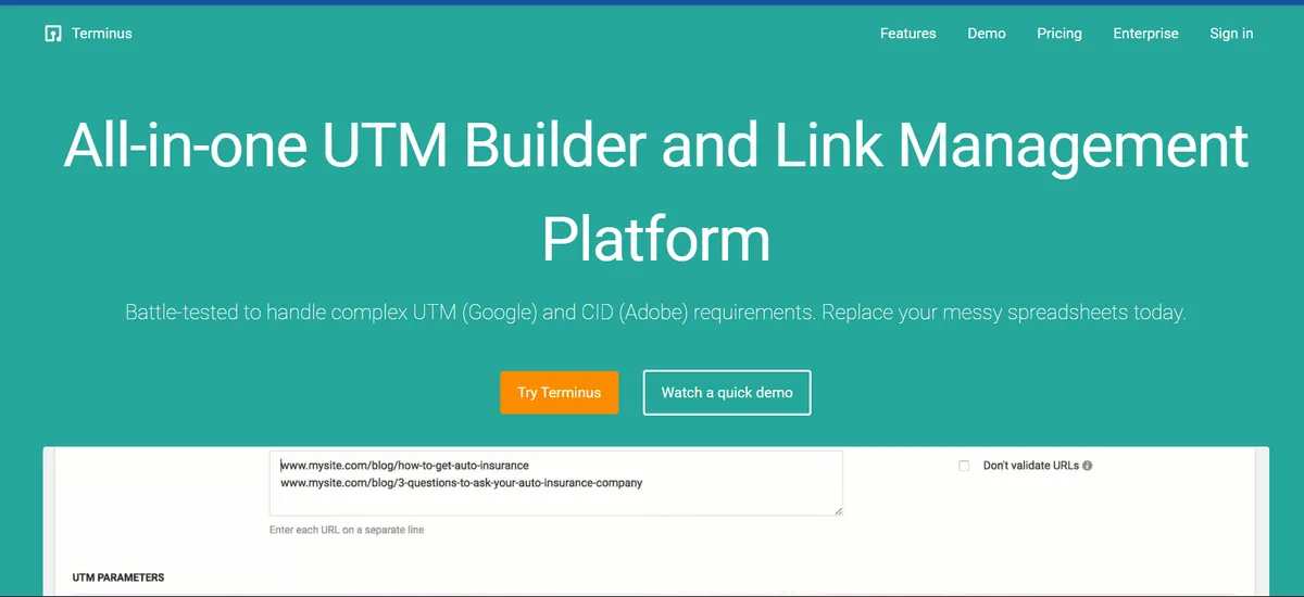 You can learn about the UTM Tagging vs Auto-Tagging before you even get started, and then you can easily create UTM tags with Terminus’ UTM Builder.