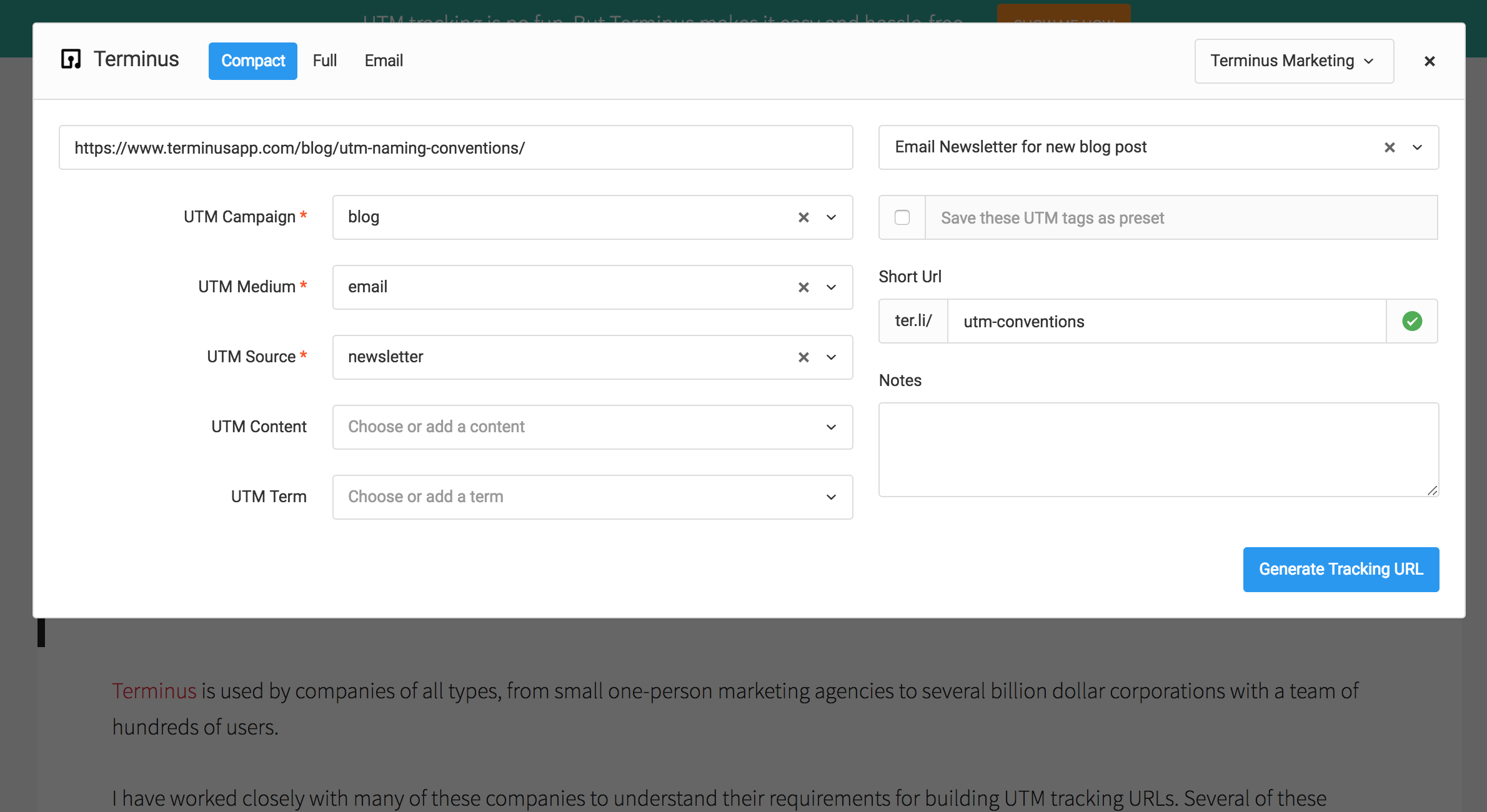 Step 2. Current website URL will be automatically populated in the URL field. Build your URLs as you normally would.